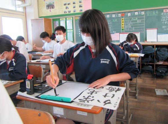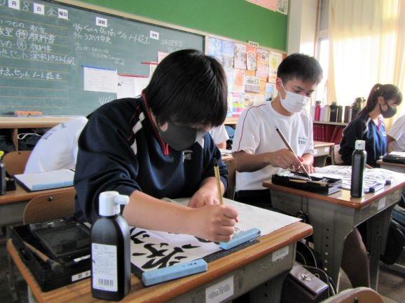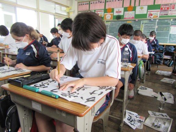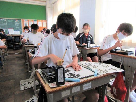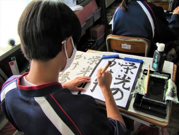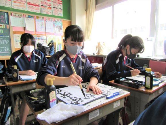5時間目、3年生は競書会を行いました。毎年、3年生は「栄光のかけ橋」という文字を書きます。これからの進路や、人生の目標に向かって、「栄光のかけ橋」を駆け上がることを期待しています。