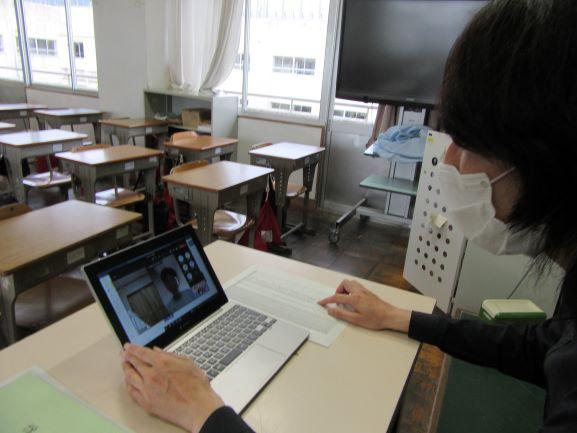 3年生はタブレットPCを持ち帰り、自宅からTeamsの接続練習を行いました。生徒は自宅から、学校の各教室にいる担任の先生のパソコンとつながるかの確認をしました。1年生、2年生は来週行う予定です。
