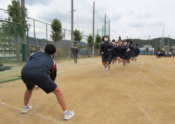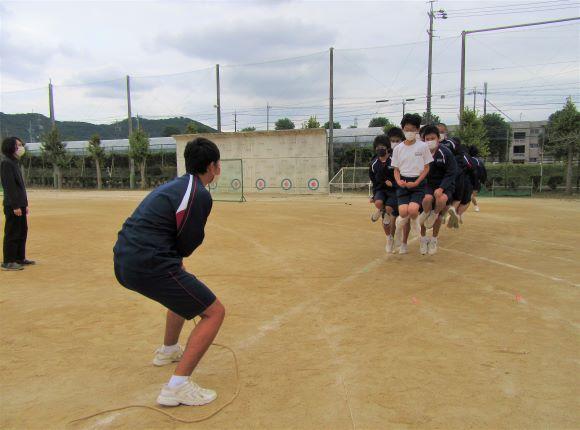 6時間目、3年生は学活の時間に、学年で長縄跳びの練習をしました。縄の回し手に近い生徒は、縄にかからないように膝曲げ、とても高く跳んでいます。明日から2日間は中間テスト、体育祭は来週の28日木曜日の予定です。