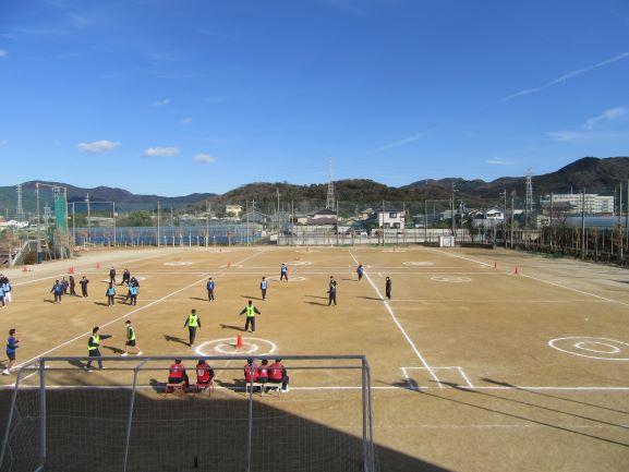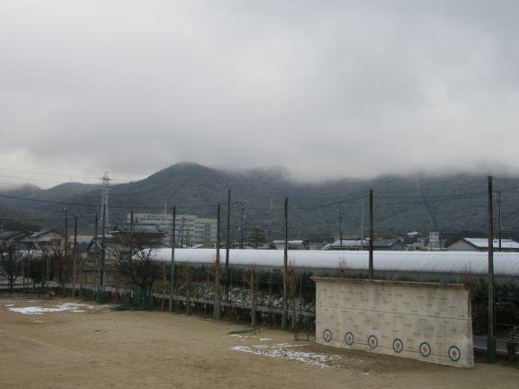 いつもは生徒の活気にあふれる運動場も、今日のお昼はこんな感じです・・・・。