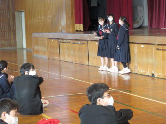 ジェスチャーゲームで楽しいひとときを過ごし、最後は全校で校歌を歌いました。