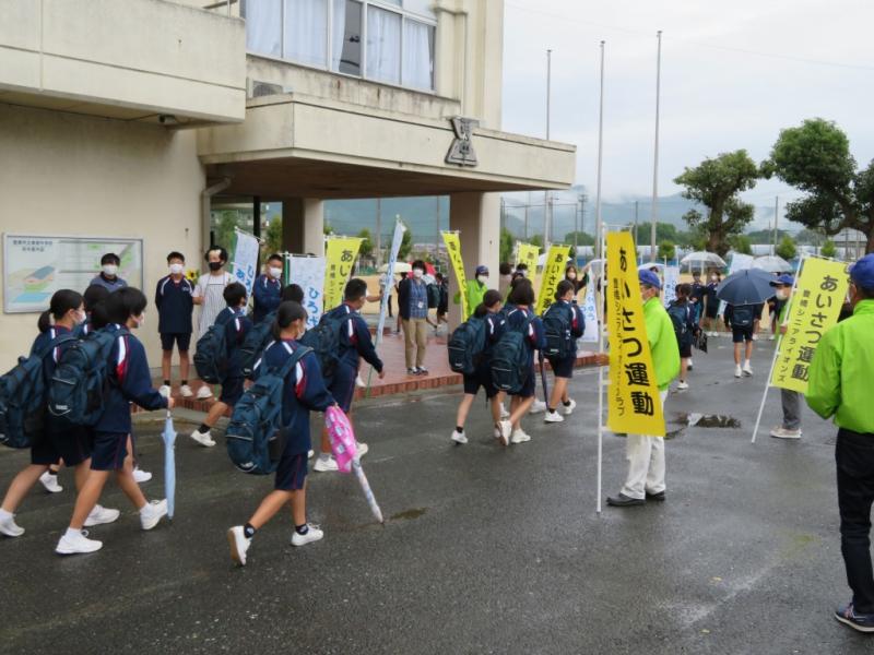 5月28日(火)からあいさつ運動がはじまっています。初日の28日はあいにくの天気で中止になってしまいましたが、今日は豊橋シニアライオンズクラブ、PTAの方たちとともにあいさつ運動を実施することができました。さわやかな5月の風の中、生徒たちの「おはようございます!」という元気のよい声が響いていました。