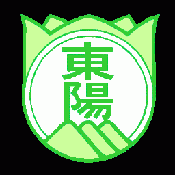 (左は東陽中学校の校章で、葦毛湿原に咲くハルリンドウと弓張山系を表現しています)