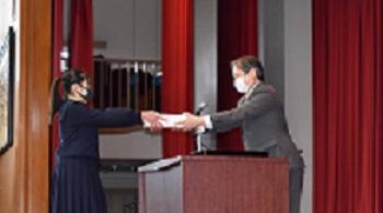 本校からは、生徒会役員が参加し、ステージ発表で学校紹介を行いました。