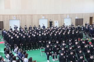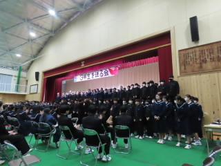 さらに、2・3年生による校歌合唱では、美しいハーモニーで1年生を魅了しました(豊岡中の校歌は二部合唱です)。コロナ禍を乗り越え、校歌も年々、声量が戻ってきています。