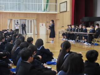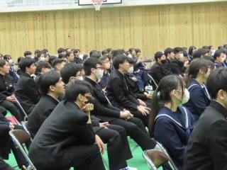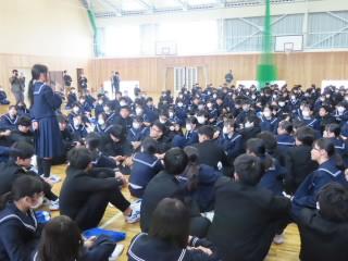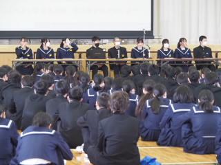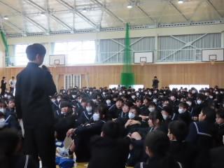 3月13日(木)6時間目に、体育館に全校生徒(1、2年生)が集まって、生徒総会が行われました。
