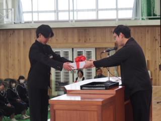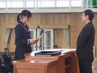 3月6日(木)、同窓会入会式およびPTA記念品贈呈が行われました。