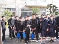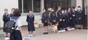 豊岡中学校では毎週金曜日に有志によるあいさつボランティアが行われます。すでに1年生も参加しています。