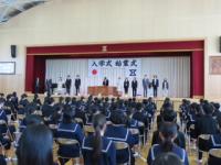 4月9日、1年生155名を迎え、令和7年度新任式・入学式・始業式を行いました。校長先生からは『校歌に登場する「ヒバリ」のように、天高く舞い上がり、自立を目ざしましょう。』との激励の言葉をいただきました。明るく、元気よく、がんばっていきましょう。