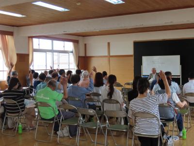 この取り組みも8年めを迎えました。先日、行った今年度初めての「お話タイム」では、和気あいあいとした雰囲気のなか、1年生も積極的に意見を発表し、交流する姿が見られました。「伝える」技能を高めるだけでなく、相互理解の場としての効果も大きいようです。