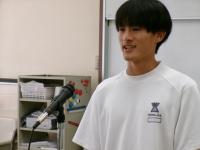 生徒代表の話では、3年生の近藤優志さんが、体育祭の応援団長の経験をもとに「人前で話すことに苦手意識があったが、学年の仲間や後輩の協力で自信をもてた。豊岡の雰囲気に勇気づけられた。チャレンジすること、行動することの大切さを学んだ。」と自己の成長を振り返りました。