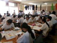 2年生は美術科の授業で、豊岡中職員ポロシャツのデザインを考えています。いくつかの学校のポロシャツを参考に、「豊岡らしさ」を表現するデザインを一人一人が考えました。