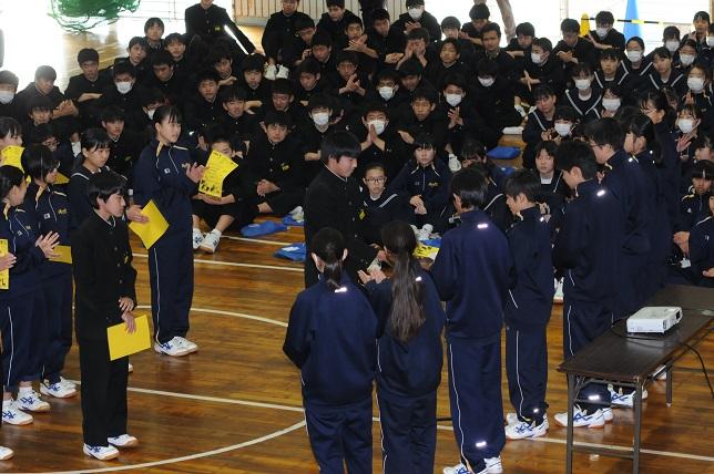 お話を伺ってみると、中学生のあいさつが少し寂しいようです。寒いときですが、感謝を込めて元気よく「おはようございます!」を言いましょう。地域の皆様、ありがとうございます。
