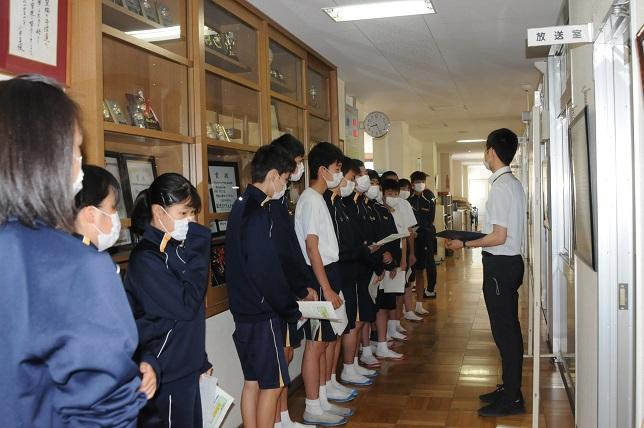 3月に行われる予定だった「令和2年度 前期生徒会役員選挙」を、ようやく行うことができました。今回は、体育館で行うことができないため、全校放送での演説でしたが、立候補者14名は堂々と自分の思いを語ることができました。
