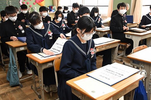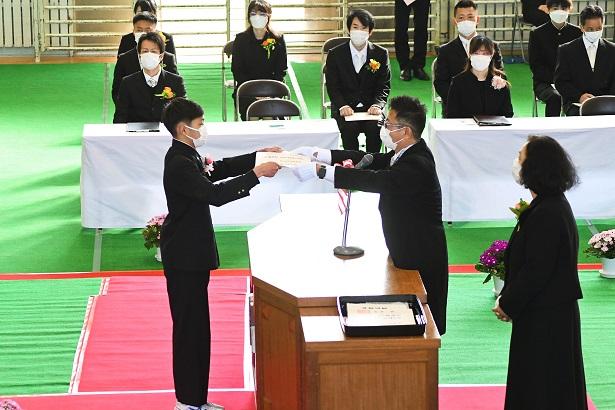 穏やかな日和の中、卒業証書授与式が挙行されました。新型コロナウイルス感染対策のため、会場には卒業生と保護者1名となり、少し寂しい形でしたが、卒業生の立派な返事や送辞、答辞などとても心打たれる式となりました。
