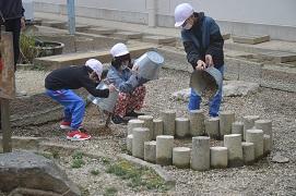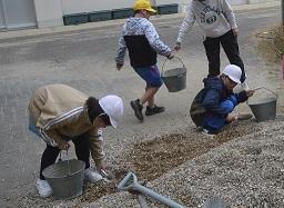5年ぶりにわくわく池の水を抜き、新しい砂利を入れる作業をわかばの子たちもお手伝いしました。自分で砂利をバケツに入れて池まで運びました。きれいになったわくわく池でどんな生き物に出会えるのか楽しみですね。
