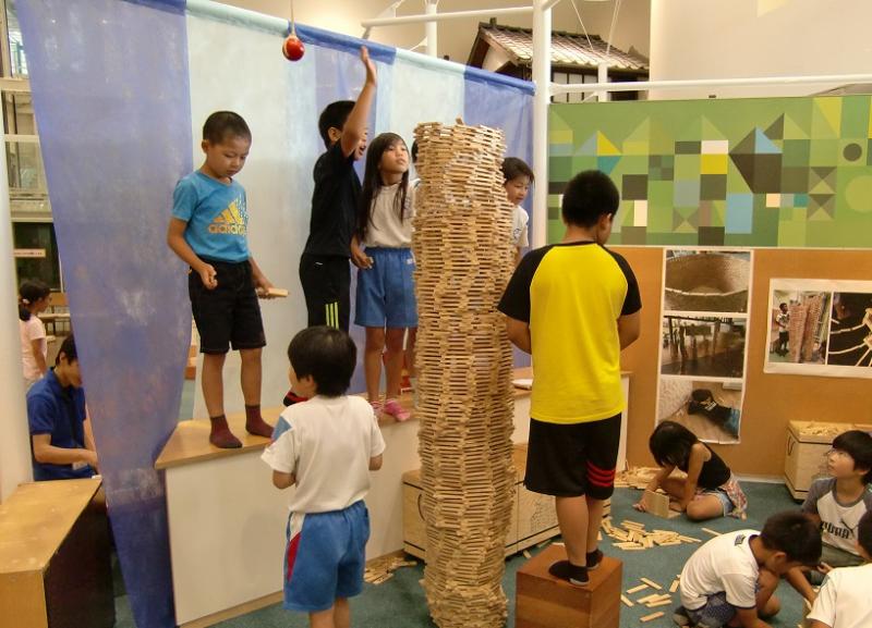 友達と一緒に背よりも高くつみきを重ねたり,最新のカメラを使ってCGの世界を体感したり,さまざまな体験をすることができました。