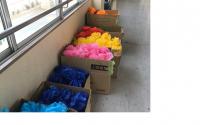 5年生は、ミシンやアイロンを使ってエプロンづくりをしていました。