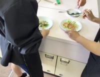 給食の試食、子どもの給食の様子参観、栄養教諭から献立や栄養バランスに関する話を聞きました。