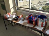鉛筆立てやごみ箱、小物入れ等、子どもたちは使い終わったものを再利用し、作づくりに生かしていました。