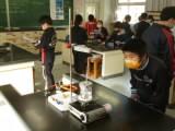 4年1組が理科室で、「すがたをかえる水」という単元で、水を加熱して、水温を測っていました。水を加熱し続けると何℃になるのか、わかったかな。