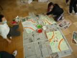 1年生は、コップやストロー等、身近なものに絵の具をつけて、絵を描いていました。一人一人で作業をしていますが、飾るときは全員の絵をくっつけるそうです。どんな絵が出来上がるか、楽しみですね。