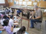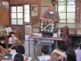 午後からは、多米にある「民俗資料収蔵室」に行き、昔の生活に根ざした道具を見たり、この地方で発展した産業を学習したりしました。