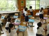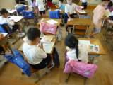 1年生は、生活科の時間にシャボン玉を飛ばしていました。2年生は、音楽の時間に鍵盤ハーモニカの演奏を行っていました。3年生は、英会話でゼスチャーを取り入れて、楽しく学習していました。4年生は、理科で「iPad」を使っていました。どの学年も意欲的に授業に取り組んでいました。