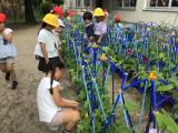 5月に種まきをしたあさがお。芽が出て,つるが伸びて,どんどん大きくなっていくあさがおを見て,水やりをするたびに嬉しそうに報告してくれました。そして今週に入ると,ついにあさがおが咲きました。きれいに咲いたあさがおを見て,今までの中で1番嬉しそうな反応です!今日もたくさん咲いていたので,朝から大興奮!「赤色だった!」「うすい青色だった!」といろいろな色で咲くあさがお。今度は自分のが咲くかなと楽しみにしている子もたくさんいます。