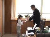 学校や家で何度も練習した成果を発揮して合格し、校長先生から合格証をもらい、とても嬉しそうにしています。