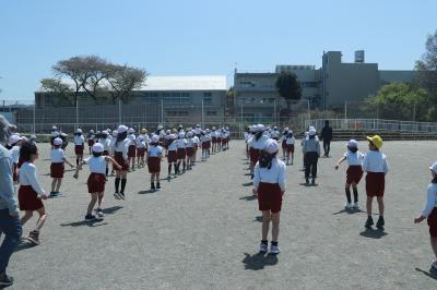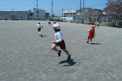 学年全員でおにごっこをしました。みんな楽しそうに活動ができました。