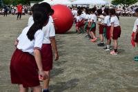 同じ組の3,4年生と協力をして,大玉転がしをしました!