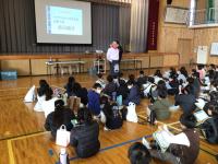 1月16日(金)の午前中にヤマサのちくわの社長さんが来てくださり,ちくわについてのお話してくださいました。ちくわを竹の棒につけて,焼く体験もしました。普段できない活動でしたので、どの子も目をきらきらさせていました。