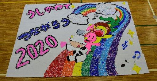 休校中,みんなが折ってくれた花の折り紙を並べた絵が,ついに完成しました。