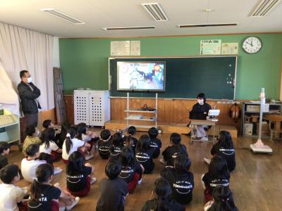 実験学習では4年生が1年生だったときの校長先生が講師として指導してくださいました。