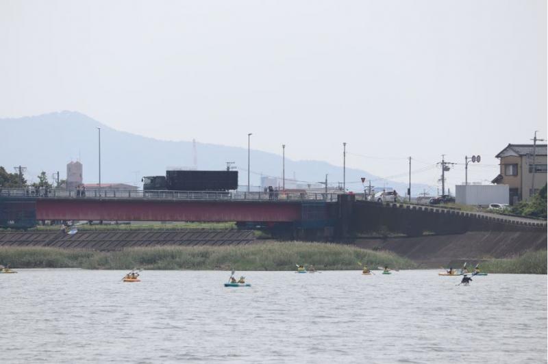 5月30日に豊川でカヌー体験を行いました。息を合わせてパドルでこぐ姿が見られました。