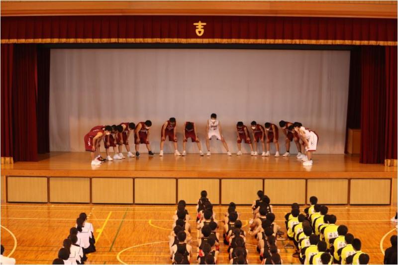 先輩方と共に活動した機会は、確かに少なかったかもしれません。しかし、その後ろ姿で、最高学年としてのあり方を、私たちに、しっかりと示してくださいました。私たちを教え支え、人間として成長させてくださった先輩方に、感謝の気持ちでいっぱいです。(中略)先輩方が卒業した後の吉中は、私たちが全力を尽くして、大切に引き継ぎます。