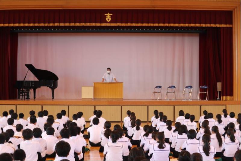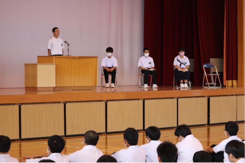 生徒集会では、多くの生徒が自分の意見を積極的に全校生徒に伝えていました。よりよい吉田方中学校を目ざして、がんばろうとする姿がとても頼もしかったです。