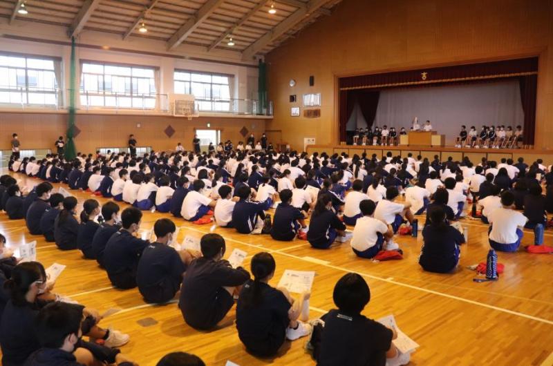 本日、令和4年度後期生徒会選挙が行われました。体育館で行われた立会演説会では、推薦責任者と立候補者が、理想とする吉田方中学校の姿や、自身のスローガンに込めた意味などを伝えました。これから、あと数日で後期が始まります。後期も、吉田方中学校をよりよくしようと考え、行動する人たちに協力し、生徒会活動へ積極的に参加をしていきましょう。