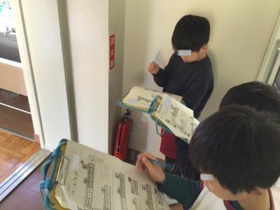 3年生が校内をまわり、何か調べています。聞いてみると、社会科で消防の仕事やしくみなどを学習しているのだそうです。日頃通っている廊下にも火事が起きた時の設備がたくさんあることに気づきました。また、職員室の入り口を入ってすぐのところにある装置も見学し、どのようなシステムになっているかを調べました。来週には、中消防署東分署も見学をさせていただく予定です。自分たちの目で見て、耳で聞いて、体験もして、学びをいっそう深めていってほしいと思います。
