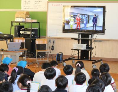 豊橋市消防本部のかたを講師に招き、3年生が火事や救急時の119番通報のしかたについて学びました。