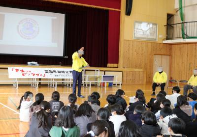 ライオンズクラブのかたがたを講師にお迎えし、6年生が薬物乱用の恐ろしさについて学びました。