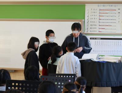 休み時間は、運動場を優先して使える学年を決めたり、サポートする教員の当番を決めたりして、安全かつ無理なく取り組めるようにしています。今日は比較的暖かな気候だったこともあり、多くの子が運動場に出て、練習や記録測定をしていました。6年生は下級生のためにいつも運動場に出ています。「後ろかけ足跳びもできるようになったよ」「次は、〇回以上跳びたいな」と、新たな記録に向けてがんばる子、低学年の子がリズムよく跳べるように、向かい合わせになってテンポを合わせ、一緒に跳んでいる高学年の子。丸く向かい合って一緒に二重跳びの練習に励む子たち…。取り組みかたはそれぞれですが、どの子も一生懸命練習していました。教員も、記録をとったり一緒に跳んだり、励ましやアドバイスをしたり…と子どもたちに寄り添って活動しました。