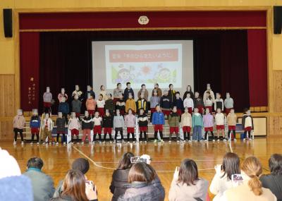 元気よく歌や楽器演奏を披露したあと、学級ごとに学びの成果を発表しました。