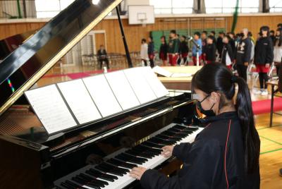本日は、卒業式予行演習と同窓会入会式を行いました。今年度も、ご多忙の中、同窓会会長様にお越しいただきました。開校1年目の思い出なども教えていただき、47回目の新たなメンバーとして同窓会の仲間入りです。開校1年目にはまだなかったという校歌も声高らかに披露しました。