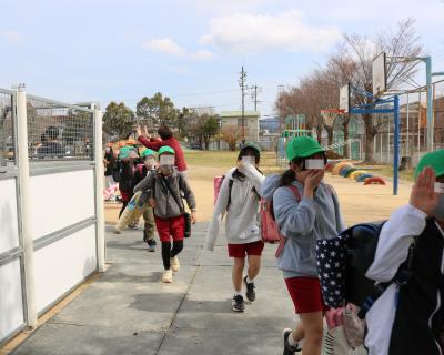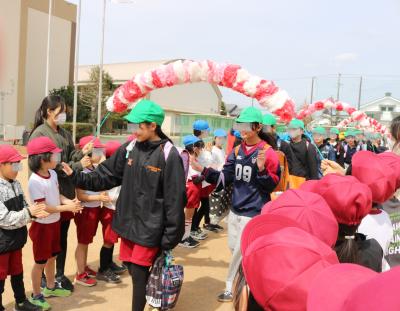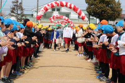 卒業式の前日に、全校のみんなで6年生の下校を見送りました。コロナ禍でなかなか思うように全校での活動ができなかったことをきっかけに始まったと聞いていますが、今ではすっかり恒例行事となりました。