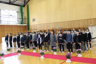 一人一人、しっかりとした返事とともに立派な態度で証書を受け取りました。「別れの言葉」では、6年間を振り返る晴れがましい姿とすばらしい歌声を披露することができました。在校生代表として参加した5年生も、昨日の準備からお見送り、会場の片づけまで立派にやり遂げました。