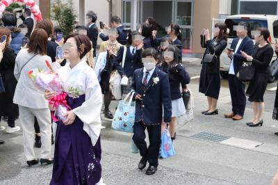 ランドセルを背負って帰るのも今日が最後。送るほうも送られる側もちょっぴり涙、涙でした。卒業式に出ることのできない下級生たちも、6年生にお祝いの気持ちを込めて精いっぱいの拍手と共にお見送りをしました。