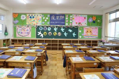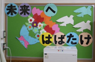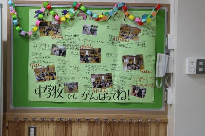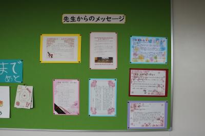6年生を全校で見送った後は、明日の卒業証書授与式に向けて5年生と職員で準備をしました。教室の飾りつけに使ったカードや絵は、校務支援員さんが毎日丁寧に作業をして用意をしてくださいました。各学年がお祝いで作ったボードもあります。5年生は、トイレ掃除から会場、教室の飾りつけまで、本当によく働きました。おかげで、明日はすばらしい式になりそうです。豊小を離れた先生がたや明日参加できない職員からのお祝いメッセージも展示しました。
