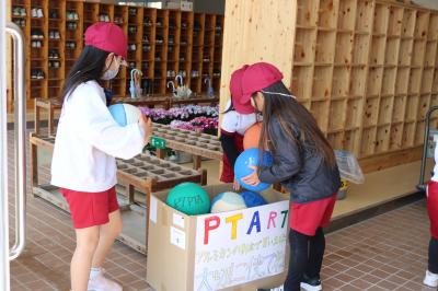 PTA予算から、子どもたちが楽しめるものを…と購入していただきました。昨年度は、雨の日などに楽しめるカードゲームを各学級に贈っていただきましたが、今年度は子どもたちからのリクエストで、運動場で遊べる柔らかいボールです。さっそく運動場で遊ぶ姿が見られました。6年生にも卒業前に使ってもらうことができました。いつもありがとうございます。大切に使用していきます。